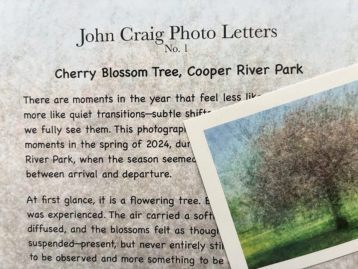 The John Craig Photo Club is a monthly snail mail experience designed for those who value photography as both art and artifact. Each edition centers on a carefully selected landscape image, reproduced as a high-quality collectors card, accompanied by a thoughtfully written letter. The letter offers insight into the moment the photograph was made—exploring the environment, the creative process, and the emotional resonance behind the image.